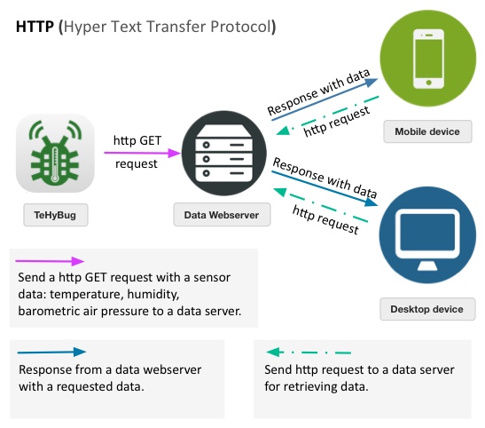 TeHyBug can send data via http get request or publish the data to a MQTT brocker.
