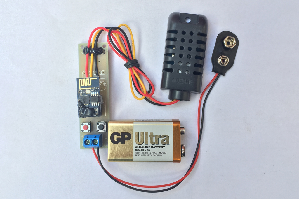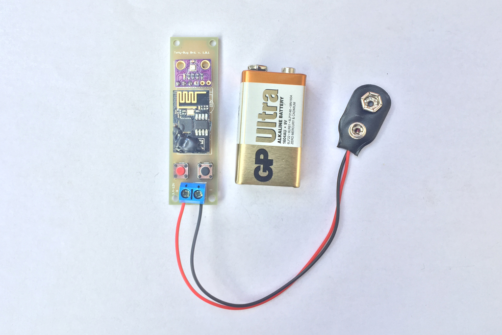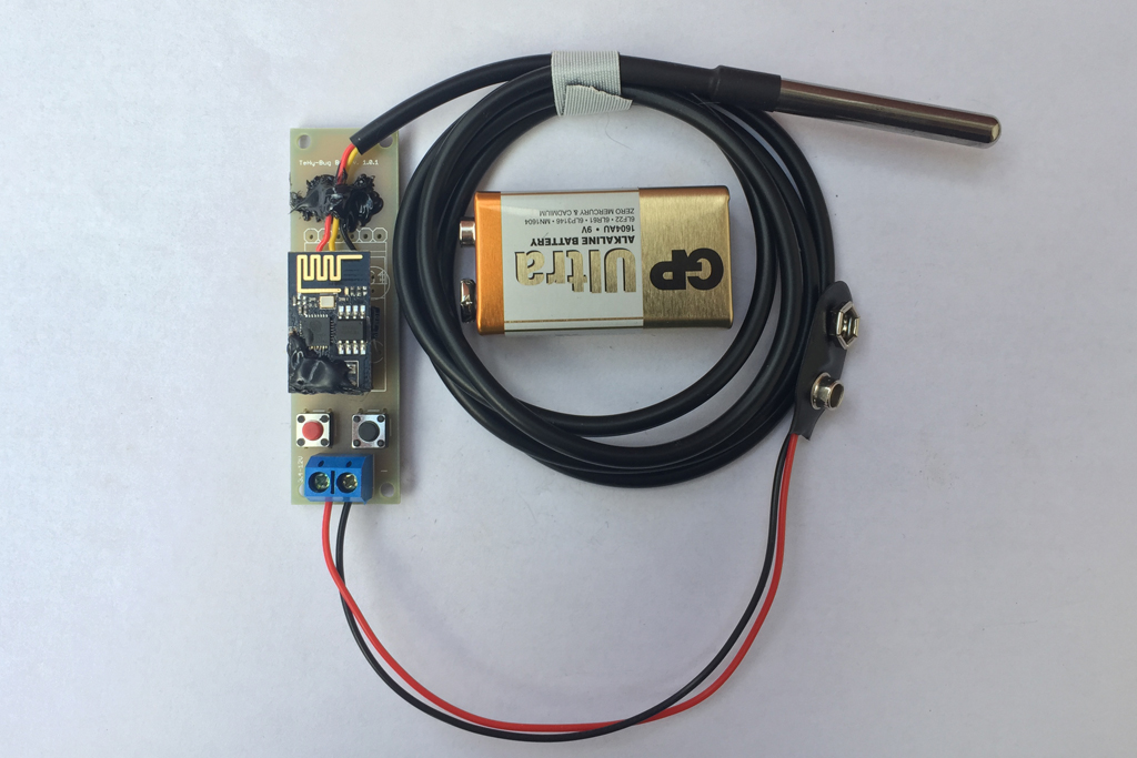 Its a wifi environmental data tracker. Create your own weather-station. Put it any place where your wifi network is available. The battery lasts for several months! In our testing environment, the TeHy-Bug with DHT22 sensor, is tracking data for more than a half year. It uses a single 3,7 Volt 18650 LiPo-Cell (depends on sending data frequency and battery type).